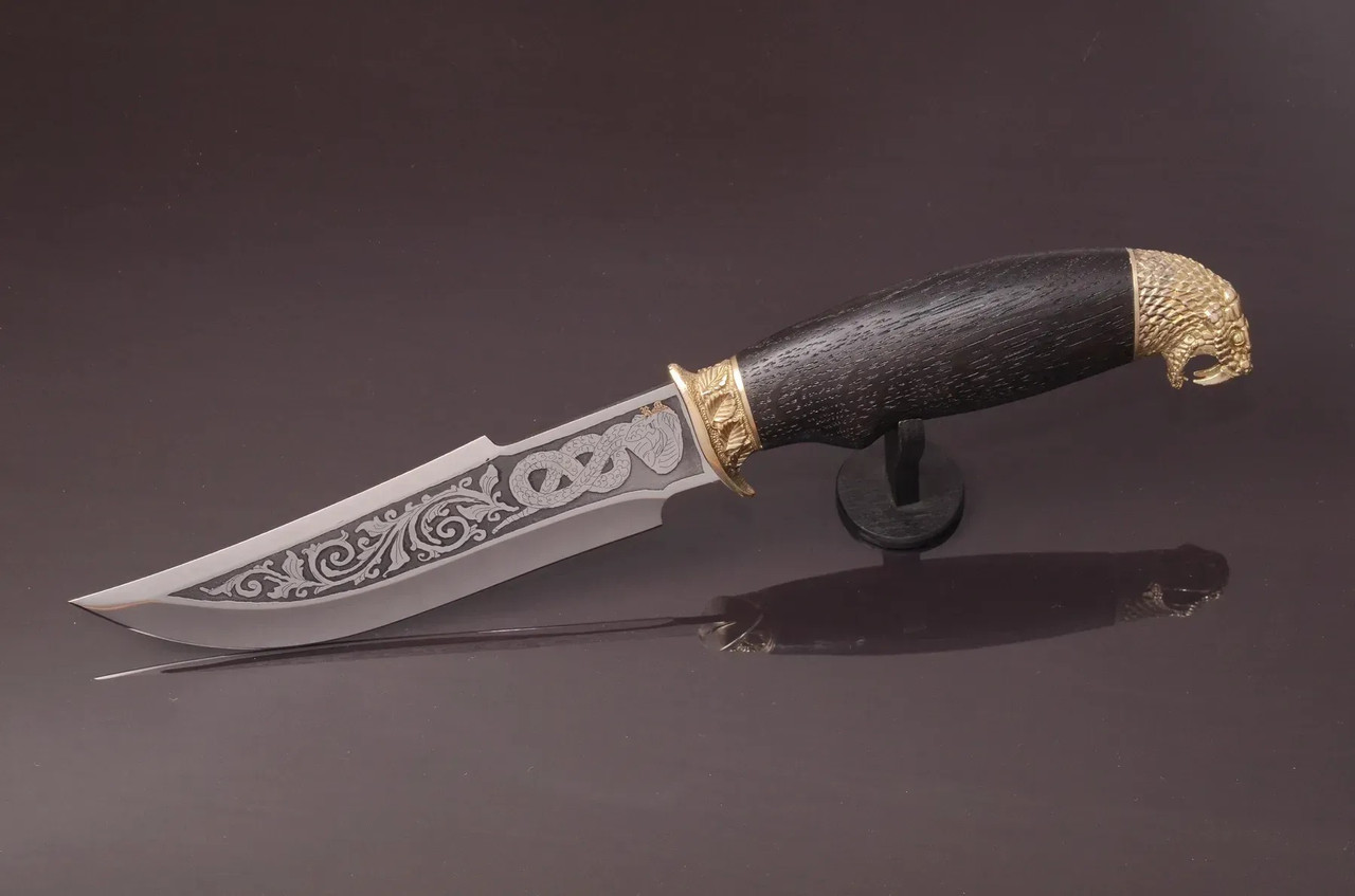 Мисливський ніж ручної роботи "Королівський змій" з травлінням клинка сталь 50х14мф