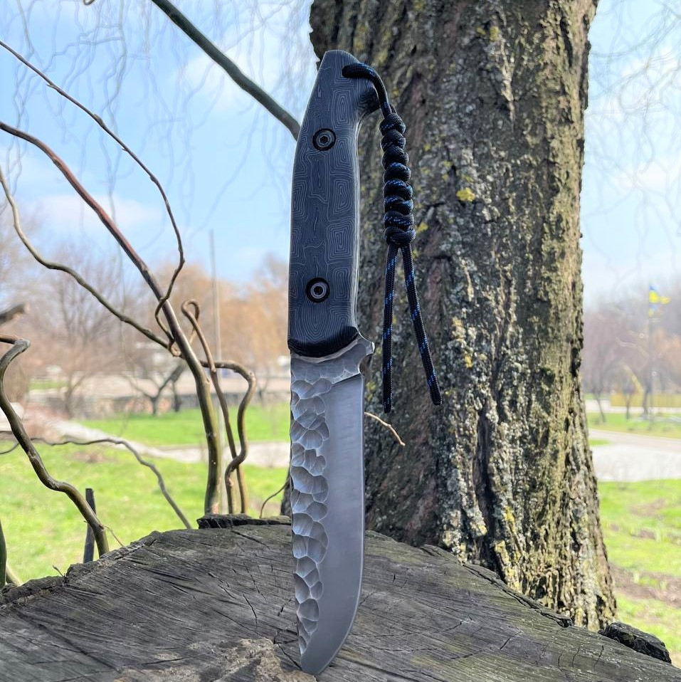 Лезо ножа виготовлене з нержавіючої сталі 50х14мф, загартоване в 58 HRC і добре заточене. Обух прикрашений декоративним візерунком "битий камінь". На мечі зроблено додаткове вороніння. Темляк із паракорду. Накладки на ручку виготовлені з сучасного полімеру Мікарта. Рукоятка кріпиться до ножа за допомогою гвинтів, що дозволяє легко розібрати ножа та прочистити його від бруду. Також цю модель ножа можна легко та швидко кастомізувати.