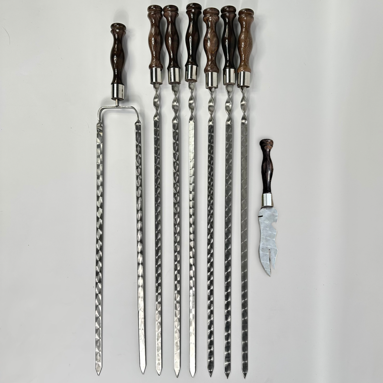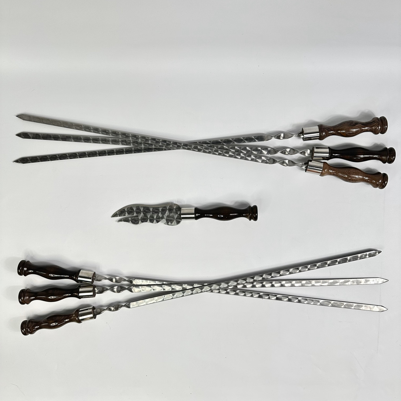Набір шампурів для шашлику 6 + Подвійний шампур + Вилка для зняття м'яса з шампура X-BBQ