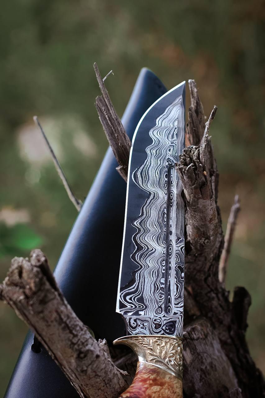 Ексклюзивний ніж ручної роботи з дамаської сталі ШХ15, У8, 9хс «Орел #1» зі шкіряними піхвами