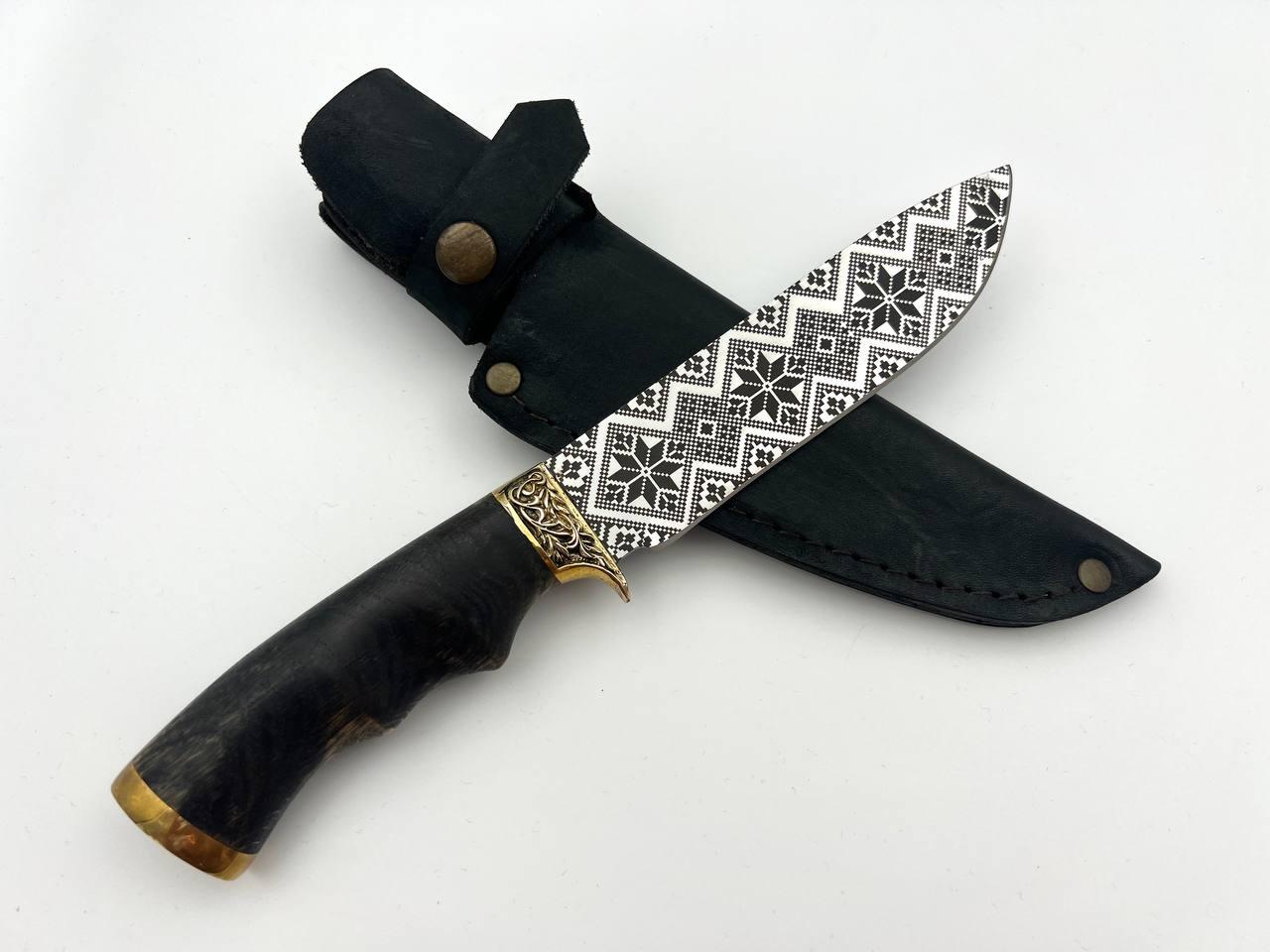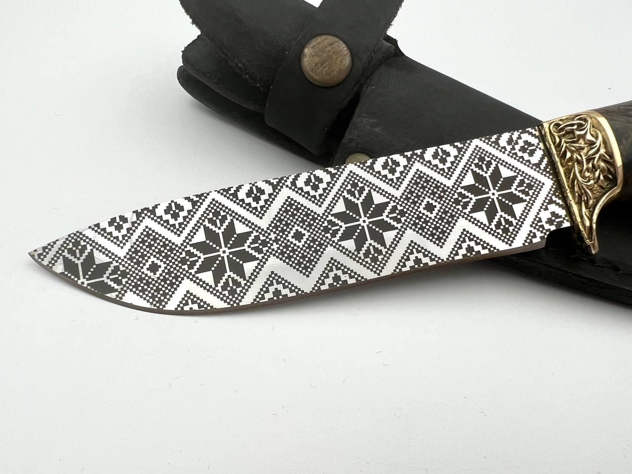 Ніж ручної роботи «Вишиванка #1» зі шкіряними піхвами нескладний сталь 95х18