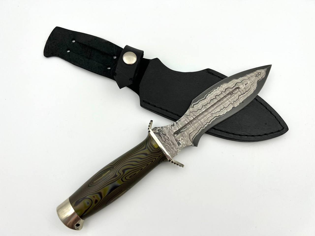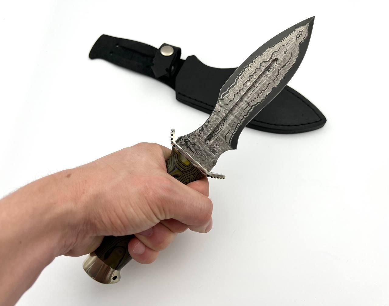 Бойовий ніж ручної роботи з дамаської сталі ШХ15, 40х13 «Антитерор #4» зі шкіряними піхвами