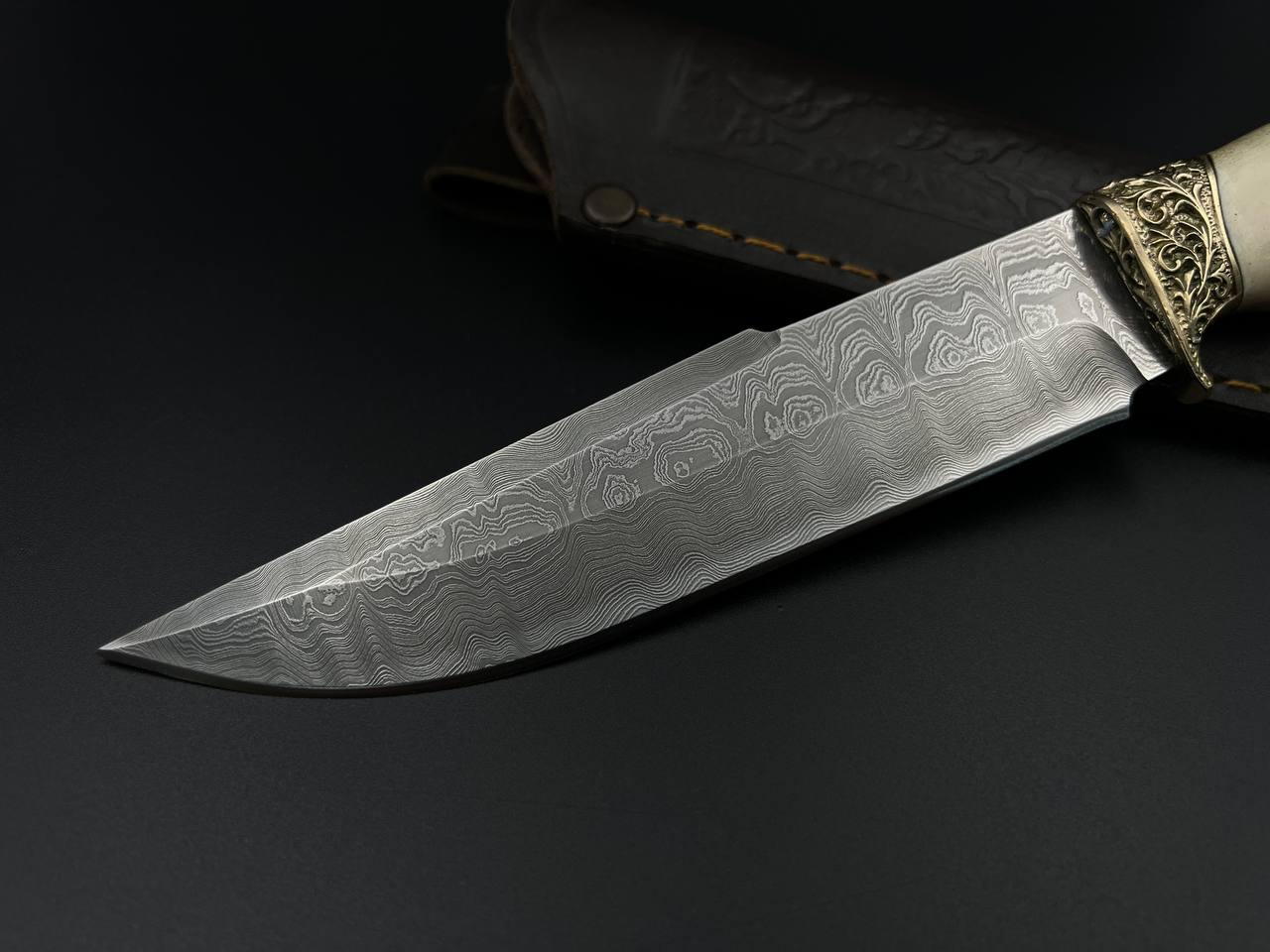 Ніж ручної роботи з дамаської сталі У10А «Добувач #1» зі шкіряними піхвами, 60 HRC