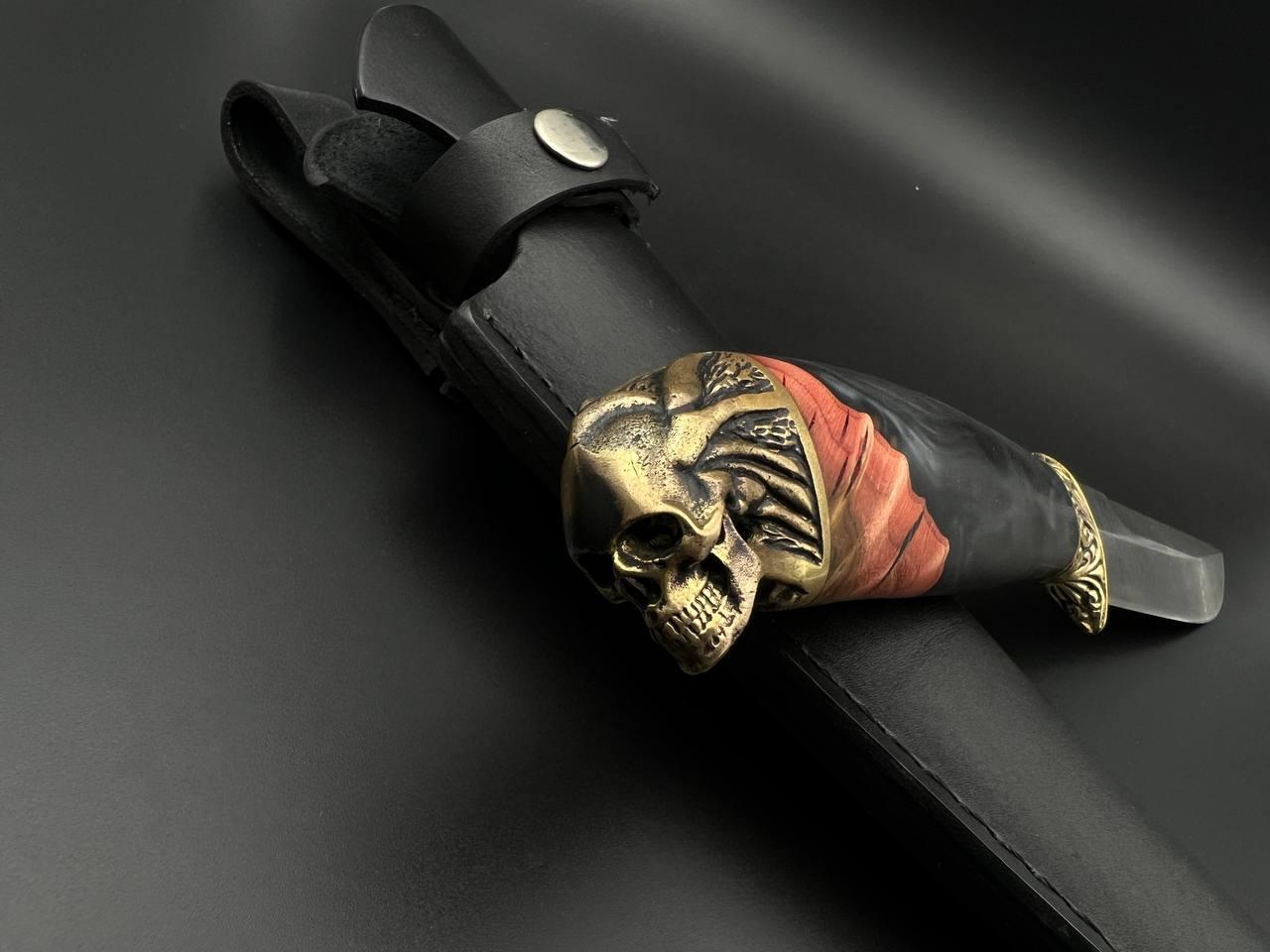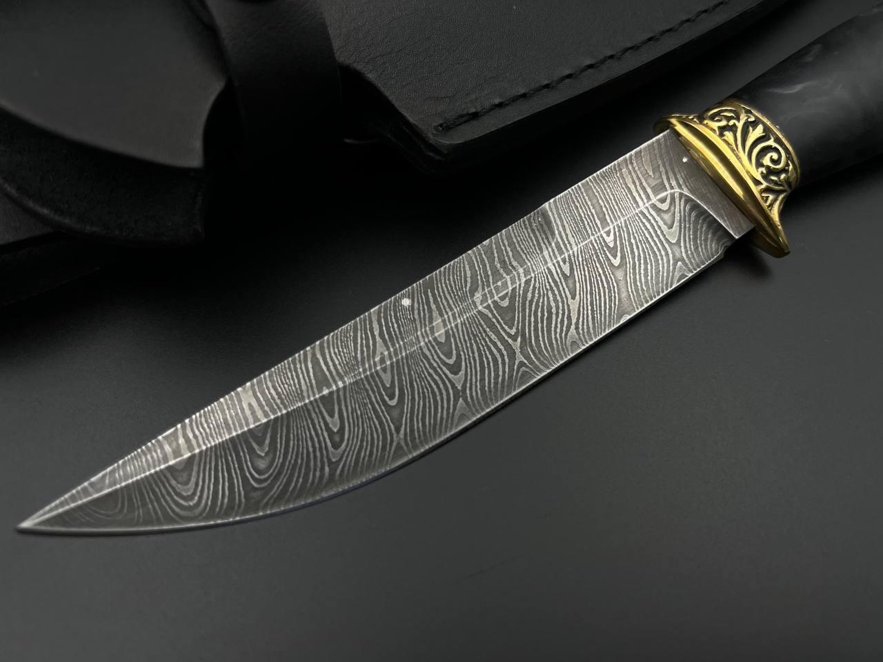 Ніж ручної роботи з витого дамаска «Скелет #5» зі шкіряними піхвами 60 HRC
