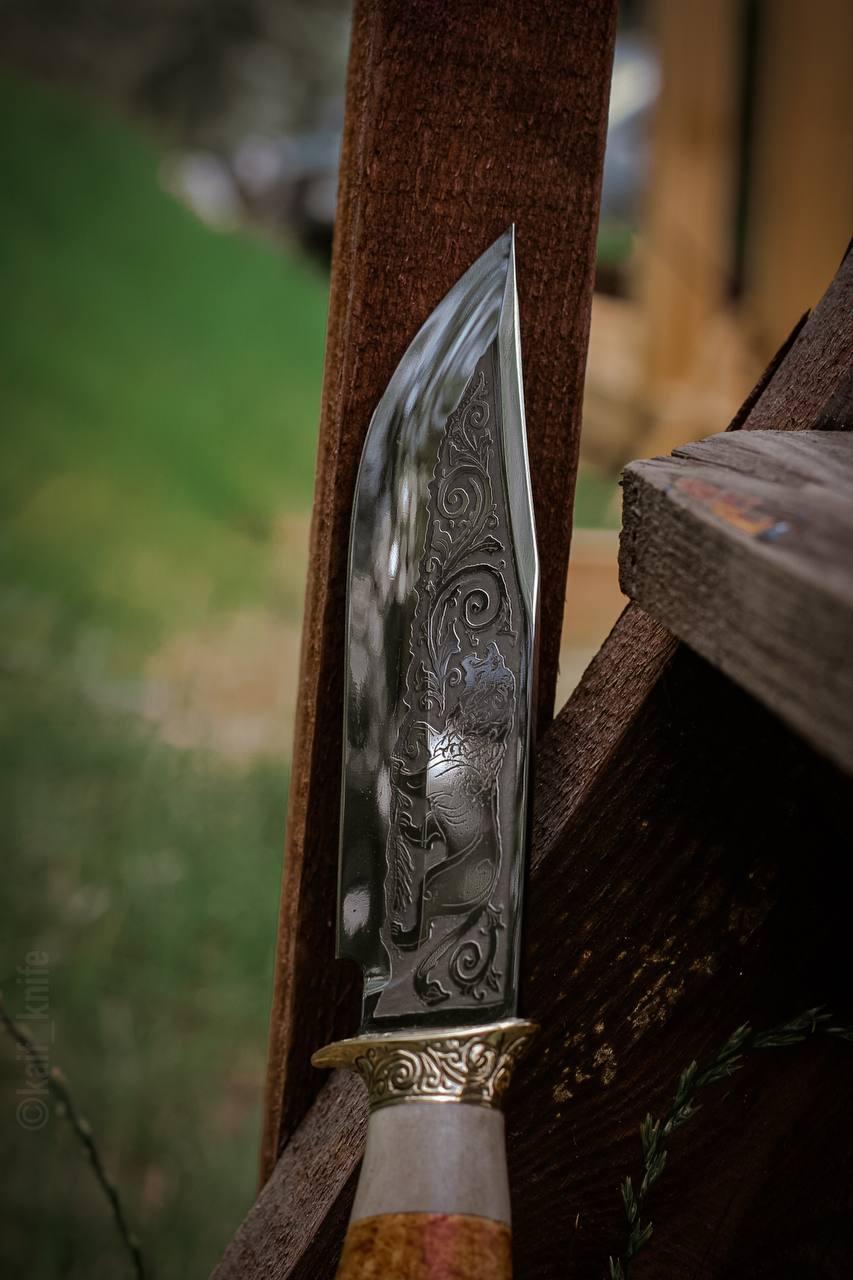 - Гравірування на клинку намальоване вручну і протравлене в хімічному складі