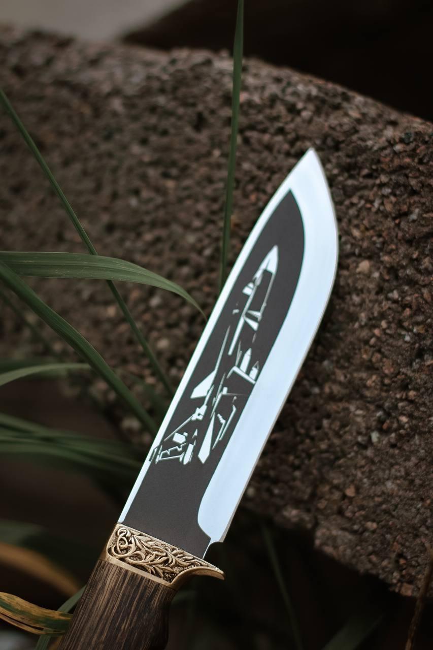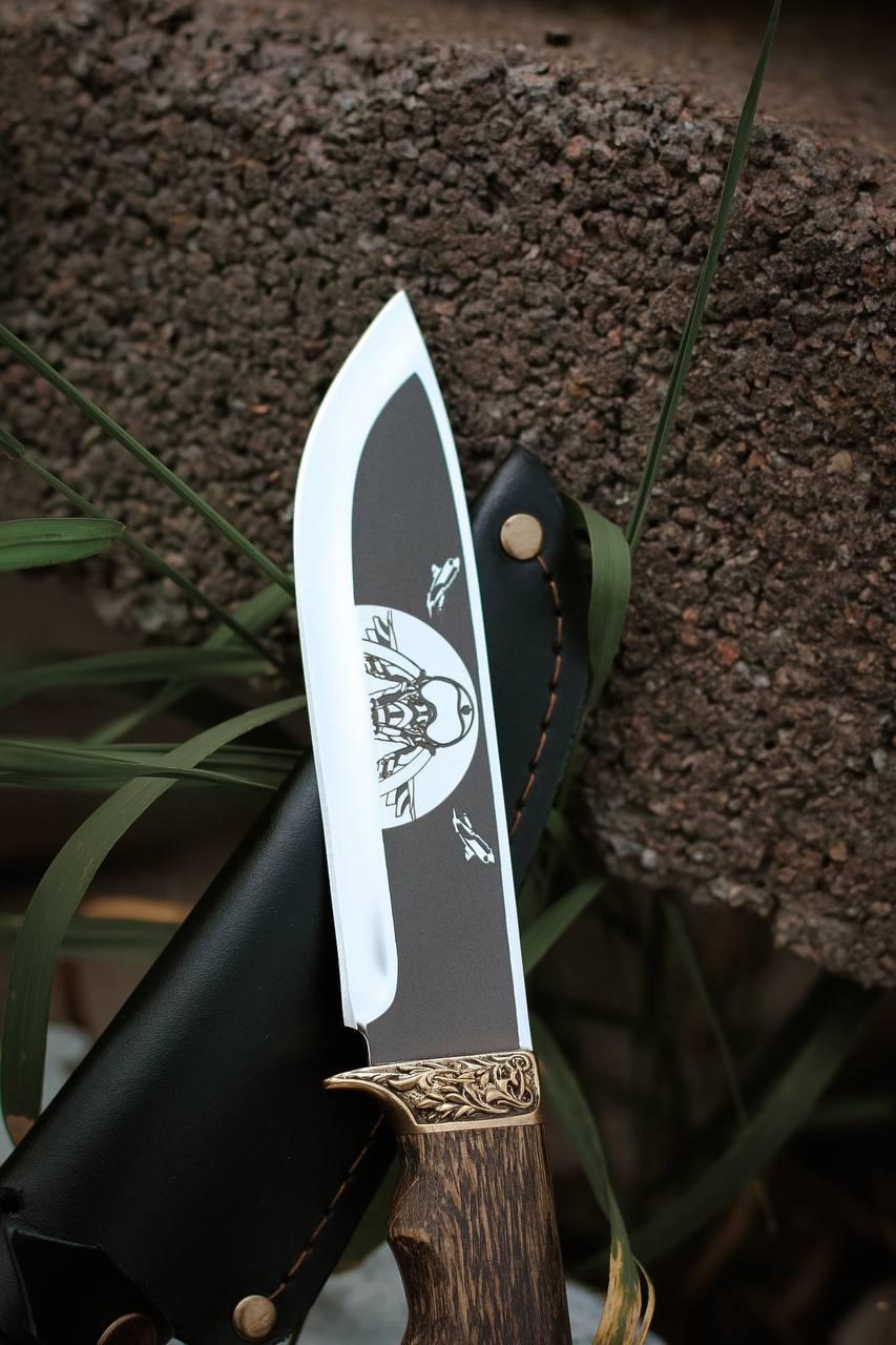 Ніж ручної роботи «Льотчик #1» зі шкіряними піхвами нескладний сталь 95х18/58 HRC.